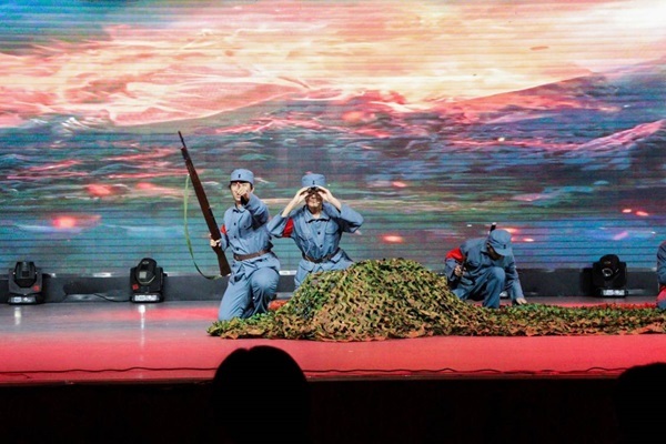 “保卫家乡,保卫黄河,保卫华北,保卫新中国”第二篇章“党旗指引铸辉煌”,通过和谐的歌声、优雅的舞蹈和铿锵的朗诵,展现了在党的领导下,国家取得的辉煌成就。大学生艺术团声乐队合唱的《保卫黄河》以其响亮的嗓音,传递了时代的强音,传承了红色精神。