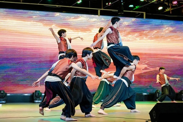 值得一提的是影视传媒学院的舞蹈《大河之子》则以其独特的艺术表现形式和满腔的热情,展现了新时代大学生的创新精神和对美好生活的向往。汇演第三章则是“盛世华章展新颜”,以合唱、歌伴舞等形式,展现了新时代大学生的风采和对未来的憧憬,也为整场汇演画上了圆满的句号。这些节目不仅展现了学生们的才华和对祖国的热爱,也让在场的每一位观众都感受到了新时代大学生的爱国情怀和责任感。汇演在热烈的掌声中圆满落幕。