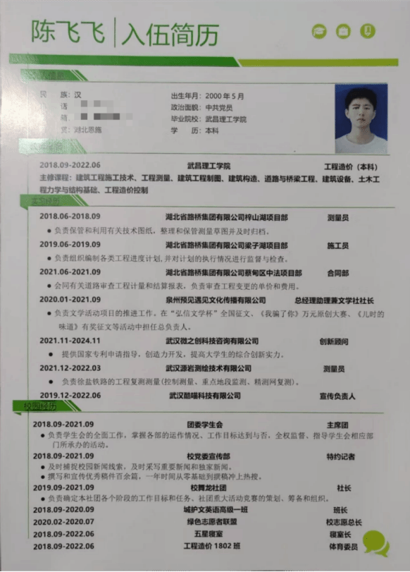 在校期间,陈飞飞是师生口中的“多面手”。他身兼数职,不仅是校学生会主席,还担任多个社团负责人。曾多次获评国家励志奖学金,也积极参与创新创业并拥有3项国家专利,他参与的“小橘灯”公益支教项目获评省级重点支持领域项目。同时他积极推进乡村振兴,助力疫情防控,参与并组织志愿服务活动60余项,累计志愿服务1700小时,事迹被众多媒体报道。