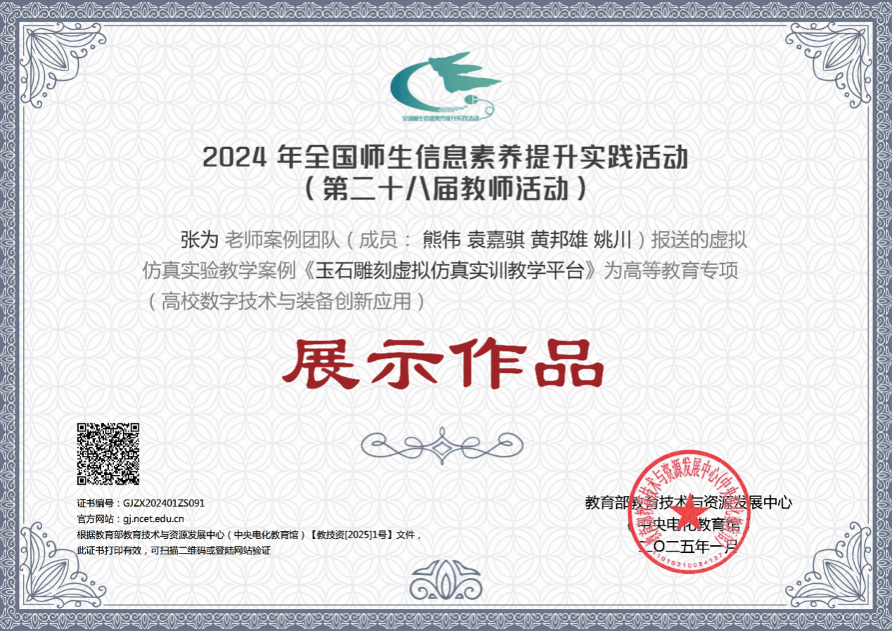 近日,教育部教育技术与资源发展中心(中央电化教育馆)公布2024年度“高等学校虚拟仿真教学创新实验室”案例征集结果,武昌理工学院《柔性产线智能制造虚拟仿真实验》获评典型作品,《玉石雕刻虚拟仿真实训教学平台》获评展示作品。值得一提的是,武昌理工学院是湖北省唯一获评“典型作品”的高校,同时也是同类高校中唯一入选“展示作品”的高校,充分展现了学校在虚拟仿真实验教学方面的显著成效。