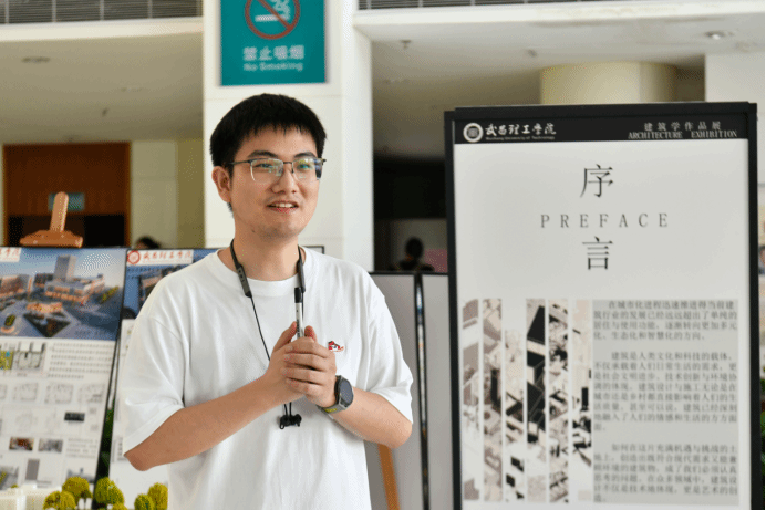 “精美!将参数化设计、BIM技术和可持续发展理念完美融合的设计方案,要知道就转到建筑学专业,给自己设计一栋楼。”智能建造专业21级毕业生张书慧现场观看时发出的惊叹,投资学专业2401张祺学生则表示:“看建筑学毕设展超震撼!创意设计超绝,还get到跨学科的新思路!”本次展览共展出了数十件毕业设计作品,包括建筑设计、城市规划、景观设计等多个领域,涵盖了商业综合体、教学综合楼、艺术中心、游客服务中心等多种建筑类型。作品中不仅展示了详细的设计图纸、模型和效果图,还包含了前期分析、设计说明和经济技术指标等内容,体现了毕业生们的创新思维和专业技能,也反映了他们对建筑行业发展趋势的深刻理解。