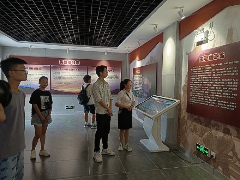 志愿者团队成员从景阳镇出发驱车四十余分钟抵达照京坪革命历史陈列馆。场馆分为五个展厅,分别为“星火播大山”、“贺龙收神兵”、“血战照京坪”、“红旗遍山野”、“青山留忠魂”。馆内收藏了大量革命先辈使用过的物品,文物保存完好,历史意义重大。在红色革命历史陈列馆,支教队伍了解了贺龙、关向应等老一辈革命家的英雄事迹和照京坪的红色革命历史,感受到了革命先烈们不惜抛头颅、洒热血的宝贵精神。队长王凯伦表示,此次活动不仅回顾了中国共产党的奋斗史,更是一场深刻的思想洗礼,引导我们在今后的工作学习上要从自身做起,不断学习知识,提高自身素养,向革命先辈们学习,把青春热血挥洒在祖国最需要的地方。