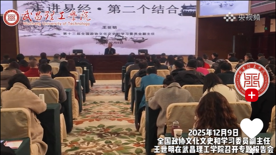 简介:12月9日上午,中宣部原副部长、十三届全国政协文化文史和学习委员会副主任王世明,应邀到武昌理工学院作《走进易经·“第二个结合”》专题讲座,阐释马克思主义基本原理同中华优秀传统文化结合的内涵与路径。中国报业协会原常务理事长汪家驷等领导出席,学校董事长、校长赵作斌致辞,校党委书记高建勋主持。