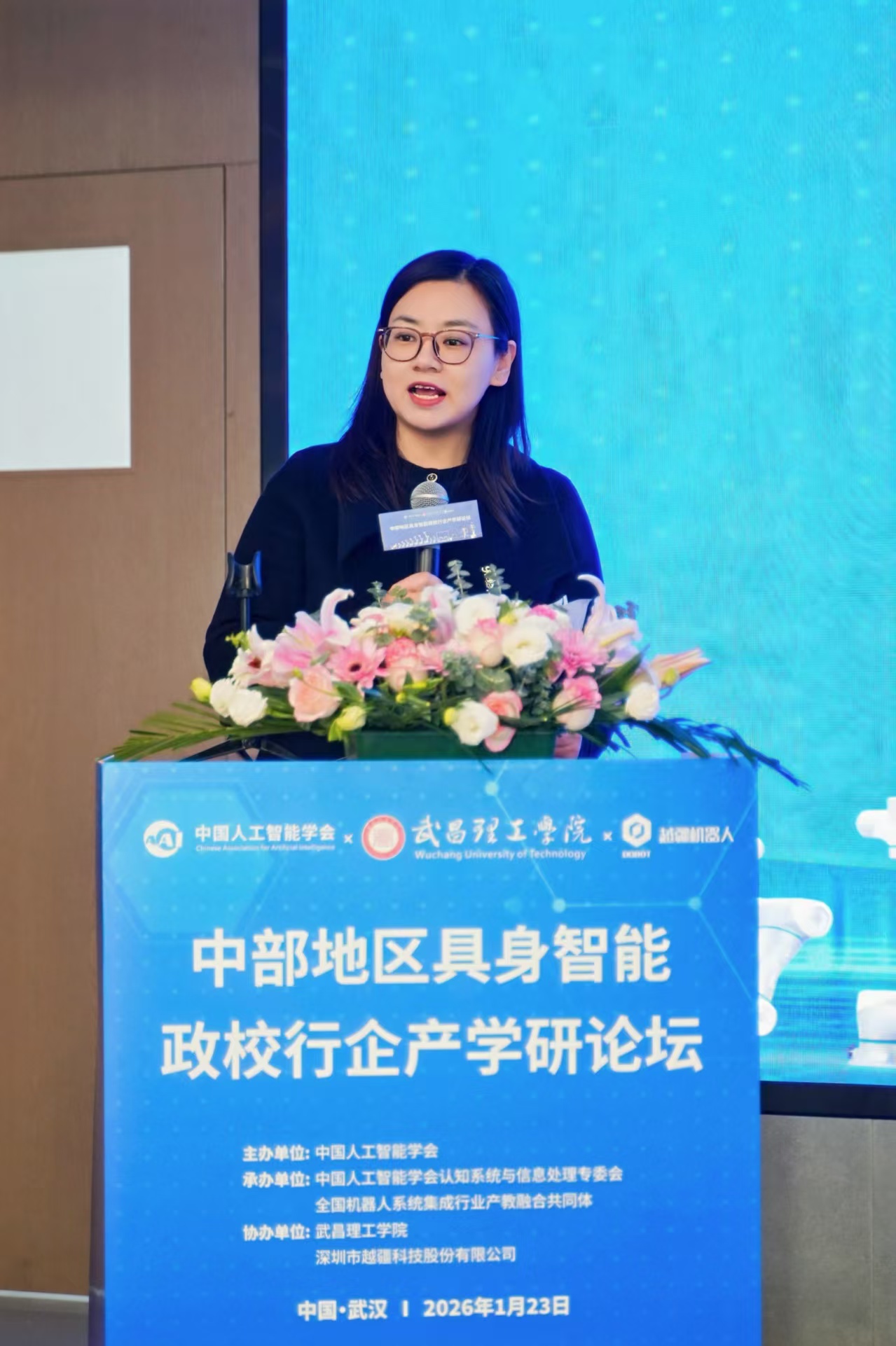 1月23日,“中部地区具身智能政校行企产学研论坛”在武昌理工学院梅南山书院举行。江夏区人民政府副区长李苨苨,政府党组成员、一级调研员雷寿文,中国人工智能学会会员、武汉科技大学机械自动化学院教授、生物机械手与智能测控研究中心主任李公法,东北大学机器人感知与人机协作研究所所长、机器人科学与工程学院实验室中心主任王斐,武汉大学机器人学院副院长、湖北“天问”人形机器人总负责人李淼,越疆科技股份有限公司联合创始人、副总经理刘主福,全国机器人系统集成行业产教融共同体秘书长、越疆科技国内教育事业部总经理李晓亮,武昌理工学院校长赵作斌,校长助理王锋、赵小睿等领导嘉宾,以及省内外高校、行业、企业代表共同参加。