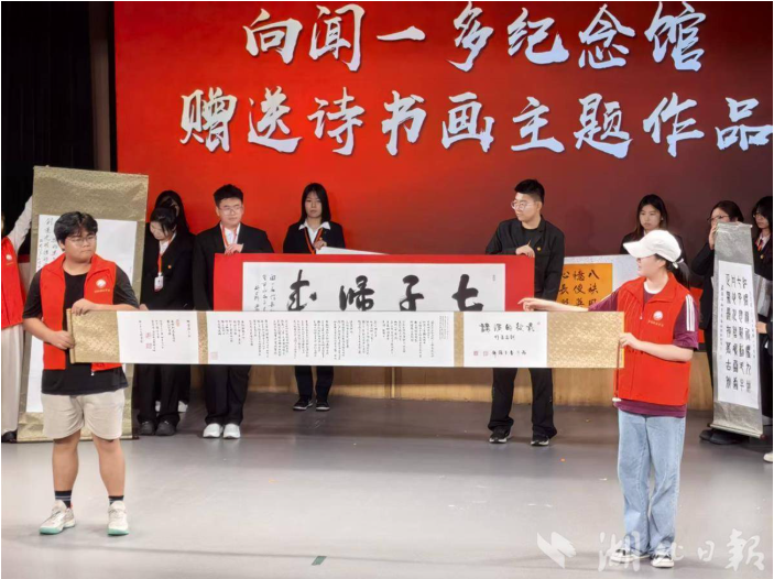 朗诵会上,湖北籍诗人、作家严春芳向武昌理工学院捐赠20万元设立“严春芳阅读基金”,用于推进大学生阅读与朗诵工作。多位诗人、书画家将创作的闻一多主题作品,赠予浠水县闻一多纪念馆。