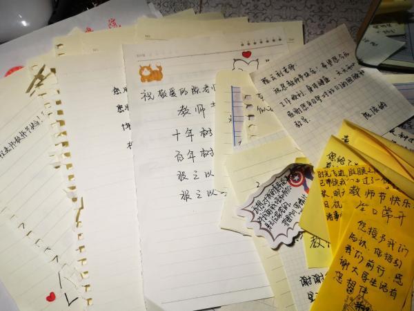 最后,由各班选出学生代表去办公室,她们轻轻敲敲老师办公室的门,很多老师还在认真地工作,看到送祝福的同学们一声真挚的问候、五颜六色的贺卡,老师们都十分开心和欣慰。一张张纸条都是蕴含着全体学生对老师们深深的祝福,老师们表示自己特别开心,感受到了全院学生的祝福,并且会更加努力地为同学们付出。