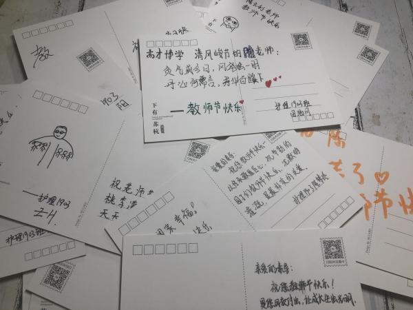 据了解,该校护理学院组织各班同学们,在心意纸上书写对老师的祝福语,同学们通过写贺卡、写邮件等方式向恩师传递莘莘学子们最真诚的祝福。每位同学自己动手,制作一张精美而富有创意的贺卡,同学们用自己的画笔真诚地向老师们表达自己的敬意,感谢老师的辛勤付出。
