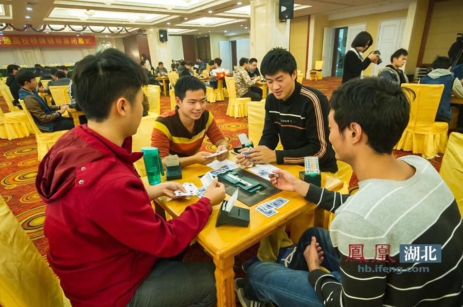 11月23日,2014年湖北省高校桥牌锦标赛在武昌理工学院圆满闭幕。本届湖北省高校桥牌锦标赛由湖北省教育厅、省大学生体育协会、湖北省桥牌协会主办,武昌理工学院承办,来自全省近20所高校高校40余支代表队200余人前来参赛。摄影:梅高强