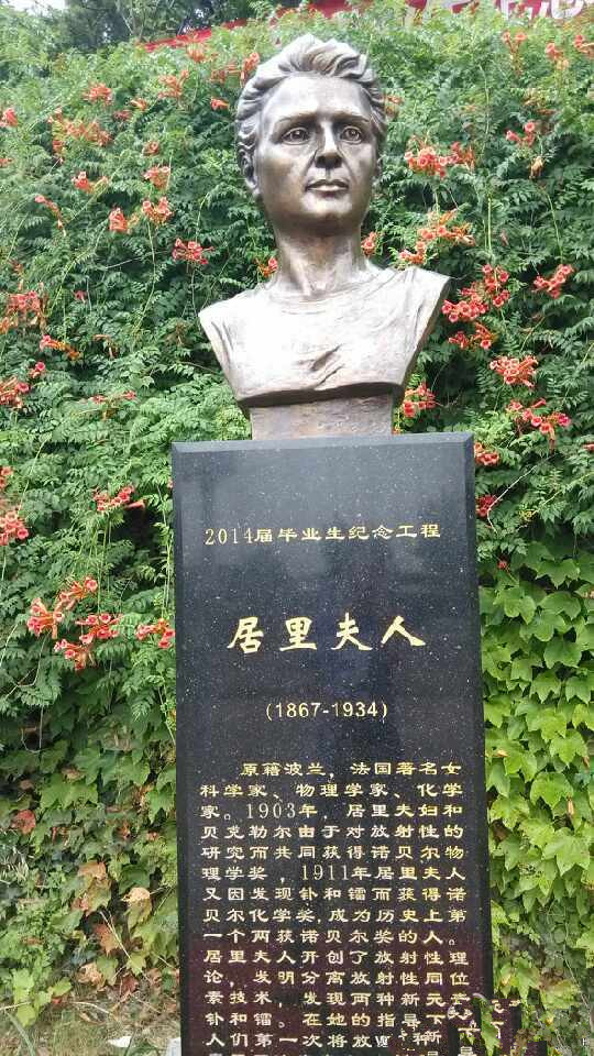 “几年来,我们随着一届又一届的毕业生走向社会,名人铜像不断增多,学校决定建立毕业生纪念长廊,并将毕业生的爱校之情,以碑为记。”武昌理工学院校团委书记李金永介绍,今年,学校采用网上征集、现场投票的方式选择2014届毕业生纪念工程雕像。广大应届毕业生积极为毕业生纪念工程募捐,为毕业生纪念工程塑像征集闲言献策,最终选定了两次获得诺贝尔奖项的法国籍女物理学家、放射化学家居里夫人。据了解,该校目前已落成8座名人铜像,其中居里夫人目前是唯一一个外国人和唯一一个女性。