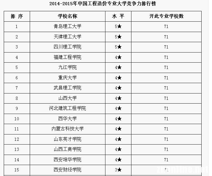 高考网:2014-2015年中国工程造价专业大学竞争力排行榜