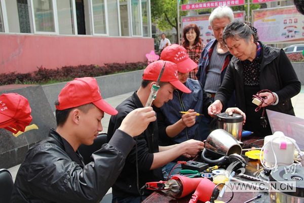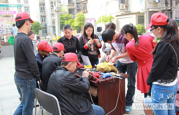 (通讯员 刘明杨 龚晨)“我这个抽油烟机的扇子还能转,但是转的很慢,你能帮我修修看吗?”3月30日一大早,武昌理工学院20余人来到洪山区关山街的葛光小区,为这里的居民义务维修小家电。