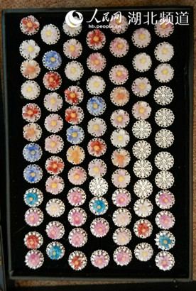 纪念品在网上一发布,便引来很多同学围观,大家纷纷点赞,名为“蔷薇”的网友说到“樱花系列的手工饰品很漂亮,有时间一定去他的工作室看看”。在武大校园摆摊销售时,摊点被游客围得水泄不通,不少游客拿着饰品爱不释手,纷纷购买,一天营业额就达到9000余元。