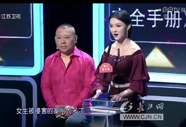 “东西都全丢给你,我朝反方向逃跑,你不去捡吗?”“我干嘛去捡,我不差钱。”“那就劫色吧,劫色三步走,第一步走用点软招,歹徒大哥,我陪你聊聊天,你是外地的吗,你回家吗,你家在哪啊,我请你吃饭…”节目中,黄冰洁与郭德纲斗智斗嘴,节目精彩纷呈,不时引得现场观众的欢呼,节目主持人孟非也不时插话打趣。