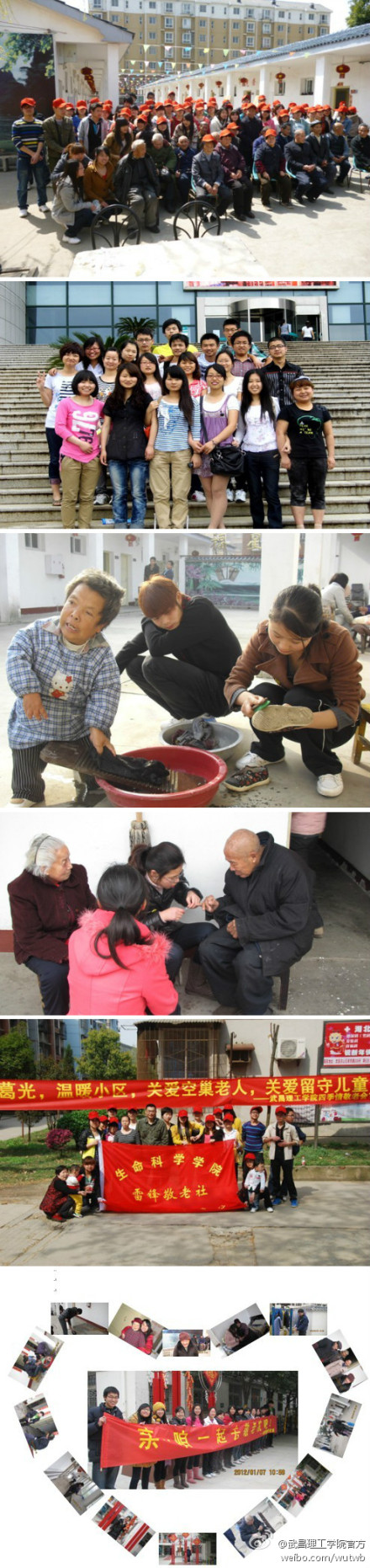 武昌理工学院“雷锋敬老社”成立于2010年12月,是全国高校中第一个以“雷锋”命名的敬老社团。社团以团队成员周期性、有组织纪律性地去各个敬老院和社区看望和帮助孤寡老人为主,以为全校师生提供去敬老院的相关资料和协助各班班委去敬老院看望老人为辅,真正做到将同学们的爱心与温暖送给每一位需要关怀的老人;让每一位有爱心的同学都参与进来,体会到用大爱换来的喜悦。