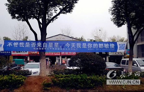 据了解,与往年女生节传统的标语相比,今年横幅上的内容更加前卫新潮,使人眼前一亮。