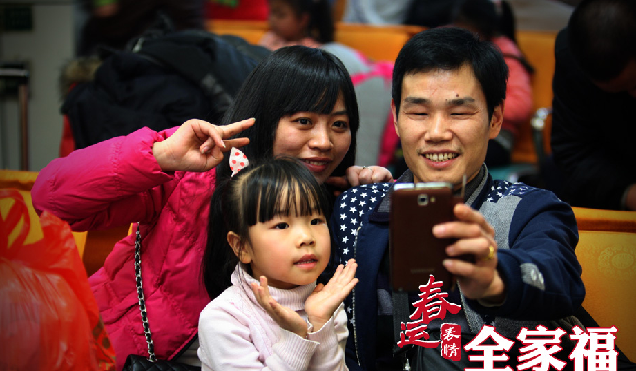春运表情 全家福 浓缩每个家庭在春运途中的故事