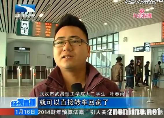 武汉在校大学生1、2:“回家在广东,到武昌站去转嘛。”“我家在天门,坐这个车子到武昌站去转。看看这个是不是更方便。”