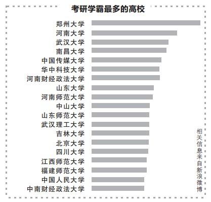 在“考研学霸最多的高校”调查中,19所高校上榜,我省4所高校上榜,其中,郑州大学摘得桂冠,河南大学位居第二,河南财经政法大学排名第七,河南师范大学为第九。