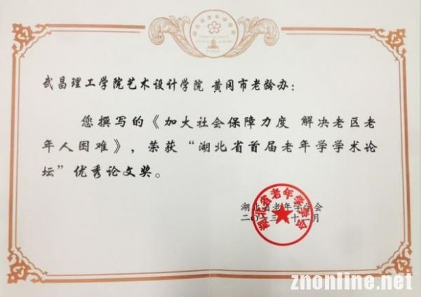 日前,从湖北省首届老年学学术论坛上获悉,武昌理工学院艺术设计学院师生通过暑期社会实践走访调研撰写的《加大社会保障力度,解决老区老年人困难》获得湖北省首届老年学学术论坛优秀论文奖,为全省唯一一所高校参评获奖成果。
