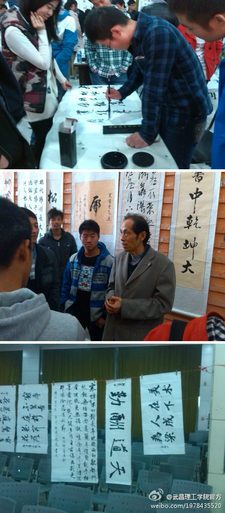 11月23日,由武昌理工学院书法协会主办的“咏梅杯”书画交流会在该校大学生活动中心拉开了帷幕,来自武汉大学、华中科技大学、华中师范大学、湖北美术学院等28所高校的书法爱好者参加此次交流活动。中国书法协会资深会员、武昌理工学院书法教师武钢还应邀到现场给予指导。