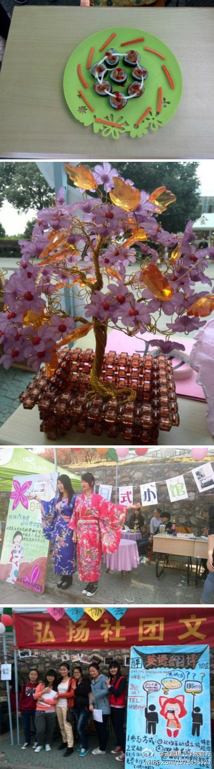 由日语协会、西方饮食文化协会和女生学堂联合开办的日式小馆第一天开张就赢得同学们的热烈追捧,只需要回答正确4个很简单的问题,即可获得美味的寿司。此外这次的活动还采取趣味游戏互动,社团联合小家的形式进行展示,加深观众对各个社团的印象以及认识程度。