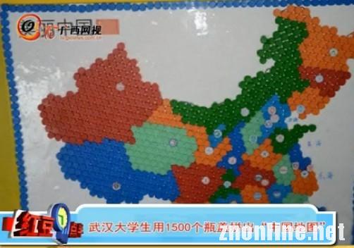 广西网视:武汉大学生用1500个瓶盖拼出“中国地图”