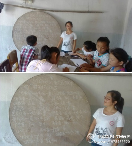 该支教点老师胡双碟对记者讲到:“看见屋内有个大圆桌,就临时用它当黑板,从学校借来粉笔,就可以正常上课了。有了大圆桌当黑板,学生们上课都不东张西望,能够安静听讲了。这段日子,多亏有这个大圆桌。”