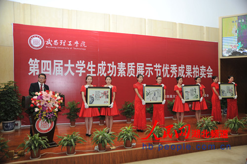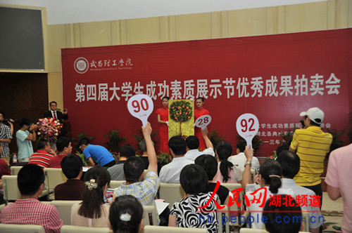 人民网武汉6月23日电 22日上午,武昌理工学院在该校图书馆举办了首届学生优秀成果拍卖会,吸引了近50家企业前来竞拍。