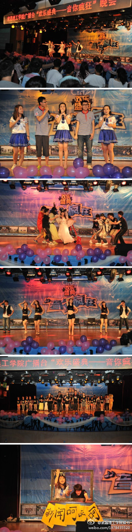 在一段开场的广播台的“陈欧体”搞笑视频过后,一曲《铁血丹心》男女对唱,雄浑圆润,气势磅礴;小品《新闻呵呵呵》将当下热点社会新闻组编成新闻简报,并加以形象化的夸张表演;小品《白蛇囧传》用反串手法,笑点不断,全场观众掌声如雷;诗歌朗诵细细讲述广播台的点点滴滴,情真意切;小品《百变大虾秀》包袱不断,笑点频出;搞怪视频《舌根上的武昌理工》记录无奈却有趣的大学生活,引起了广泛共鸣;情景剧《广播台的故事》撷取广播台的生活片段,时而幽默风趣,时而温馨感人;配音节目《我的大学不可能这么可爱》更是创意无限,令人捧腹。中间穿插的歌舞无不劲爆非凡,全场热情高涨。