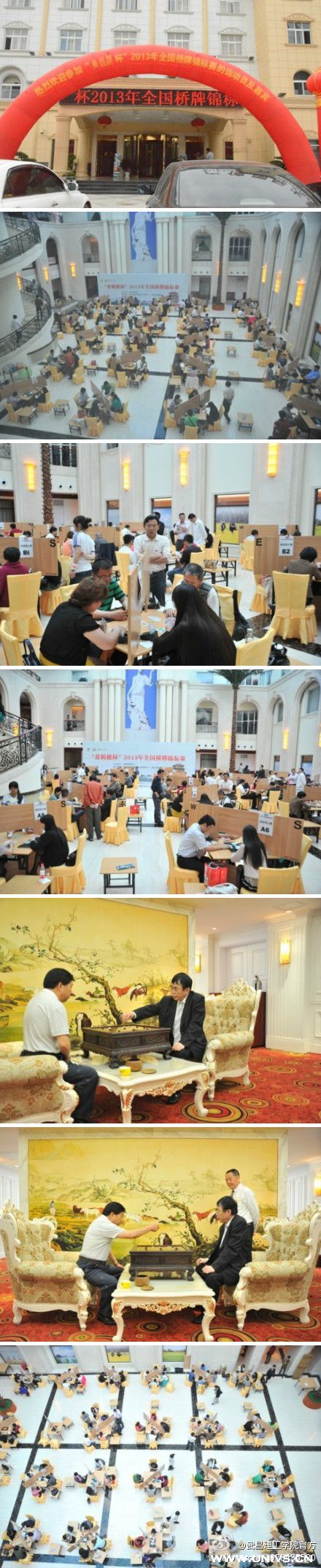 5月17日—26日,“黄鹤楼”杯全国桥牌锦标赛在武昌理工学院广信国际大酒店盛大进行。来自全国各地近百支队伍、700多名桥牌爱好者将在10天的时间里进行激烈的角逐,最终决出男子团体赛、女子团体赛、混合团体赛、混合双人赛等12个比赛项目的冠、亚、季军。