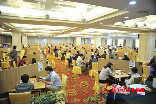 人民网武汉5月22日电 5月17日—26日,2013年“黄鹤楼”杯全国桥牌锦标赛在武昌理工学院广信国际大酒店进行。来自全国各地的近百支队伍、700多名桥牌爱好者将在10天的时间里进行激烈的角逐。