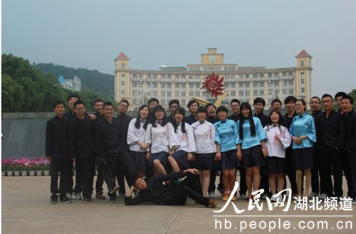 人民网武汉5月11日电 5月9日下午,武昌理工学院信息工程学院全体31名素质导师助理身着中山装在校园进行合影,以庆祝五四青年节并发扬五四精神,吸引眼球的怀旧服饰引起路过师生驻足热议。(费丹丹刘明杨 陈磊)