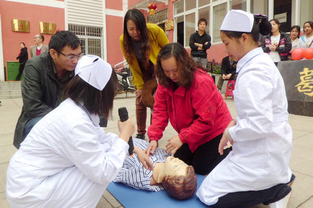 武昌理工学院生命科学学院学团委学生会院青工部和青年志愿者服务队组成的30人的医疗小分队在副长部长常凡的带领下走进光谷大道葛光小区,发挥知识的优势,为居民讲解有关颈椎病的预防与治疗、心脏按压、骨折、伤口擦伤的处理等健康方面的医疗知识,为社区居民服务。