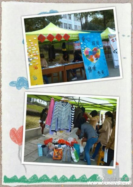 在十堰,有这么一群孩子,他们跟我们一样:渴望知识,渴望未来,渴望温情,渴望这个冬天不再寒冷。有这么一群孩子,他们跟我们不一样:我们住在有暖气的房子里,他们只能在小土房里挤暖;我们有厚厚的羽绒服,他们只能蜷缩在单薄的棉衣里,雪花带给我们的是惊喜,给他们的却是惊吓。”12日下午,武昌理工学院校社联“爱心家园”在文化长廊发起了“爱心捐赠,情暖冬天”活动,呼吁同学们为贫困山区孩子捐赠冬衣。
