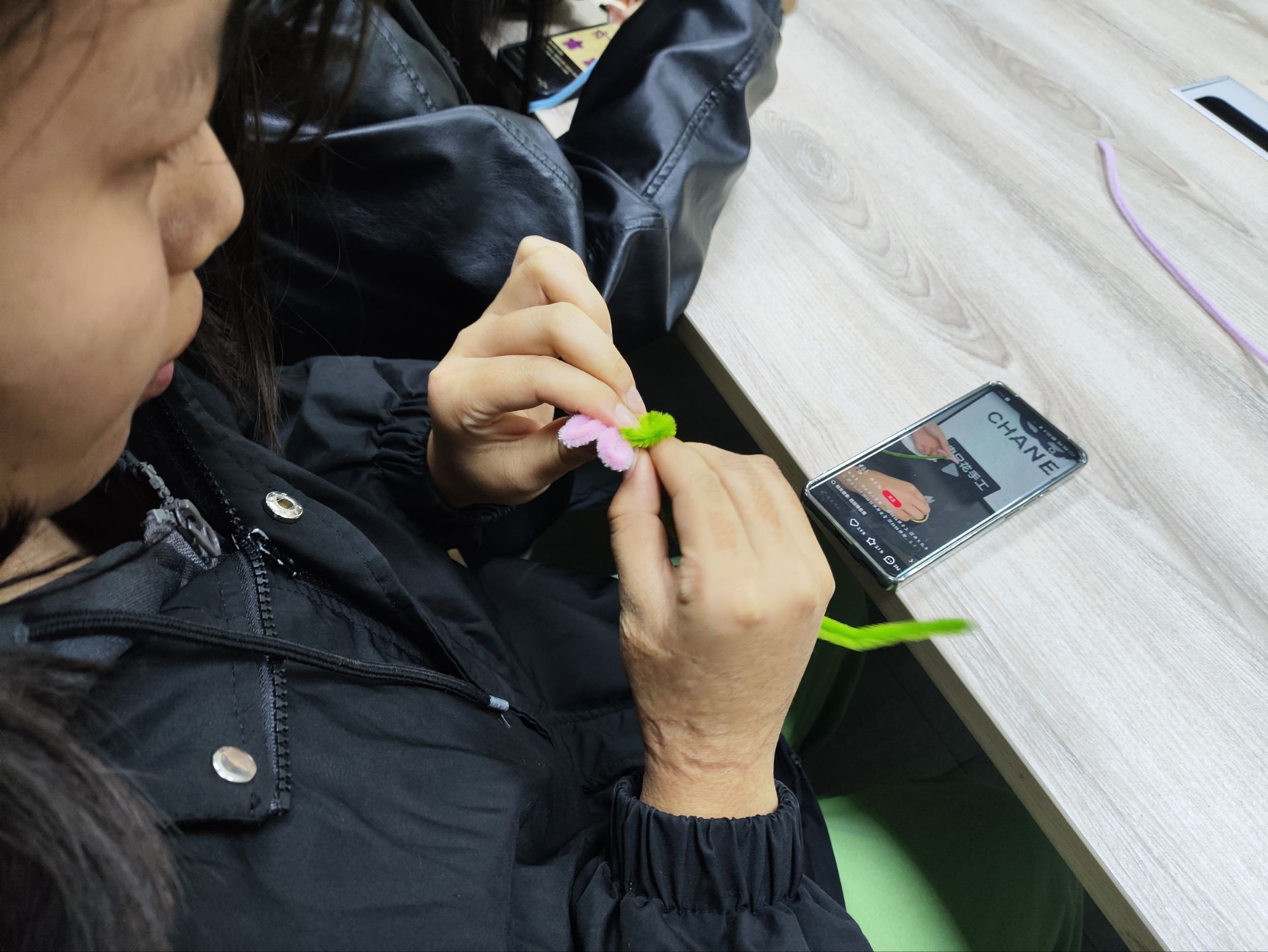支部成员们观看了一段关于社区孩子们生活的视频。视频中,孩子们纯真的眼神和渴望学习的态度深深触动了在场的每一位成员。支部成员纷纷表示,要尽自己的一份力量,为这些孩子们送去关爱和帮助。支部成员为每组分配了制作手工艺品的材料。大家按照事先准备好的教程,开始动手制作。在制作过程中,成员们互相帮助、互相学习,共同完成了各种精美的手工艺品,如精巧的百合花等。