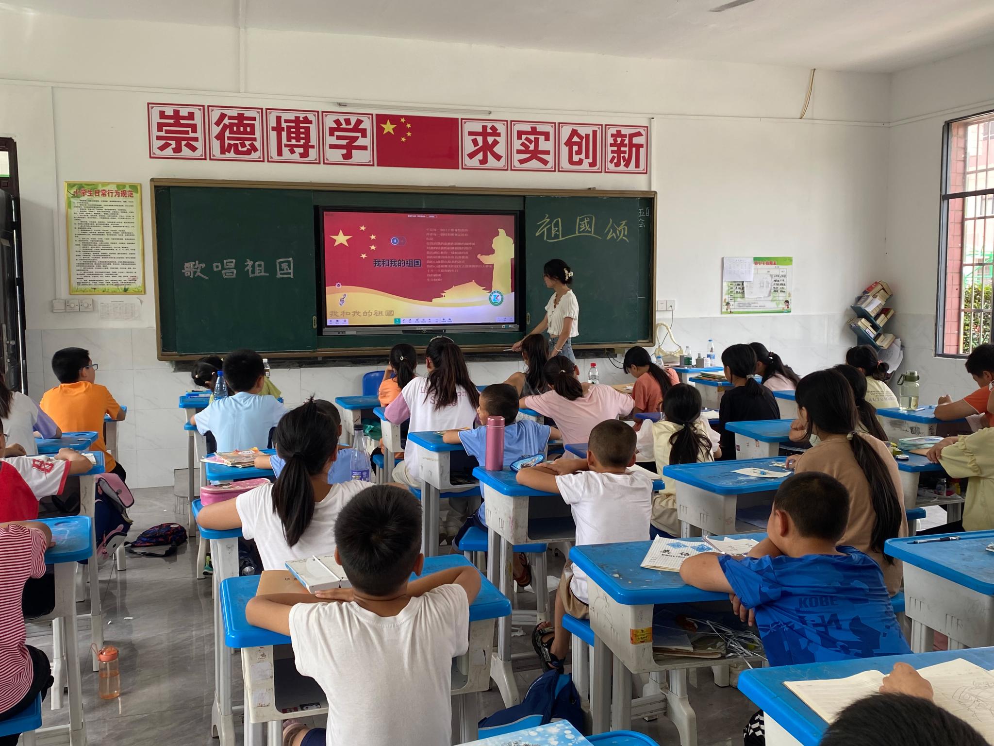 中南在线7月6日消息(通讯员 龚青 报道)2023年7月5日,为培养学生爱党爱国情怀,贯彻党的二十大精神,落实立德树人的根本任务,武昌理工学院商学院“布谷学堂”社会实践队于湖北省咸宁市崇阳县田铺村明德小学的“希望家园”支教点位,在第一堂音乐课上以“唱响红色经典,传承红色精神”为主题开展了红歌学唱活动。