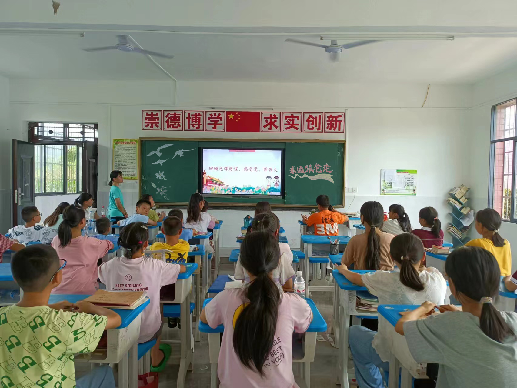 中南在线2023年7月18日消息 (通讯员 熊已欣 报道)为激发少年儿童的爱国热情、将红色基因根植于心,武昌理工学院商学院“布谷学堂”社会实践队于2023年7月17日14时在湖北省咸宁市崇阳县田铺村明德小学为同学们开展了一次“党史学习教育,强化使命担当”的主题班会。