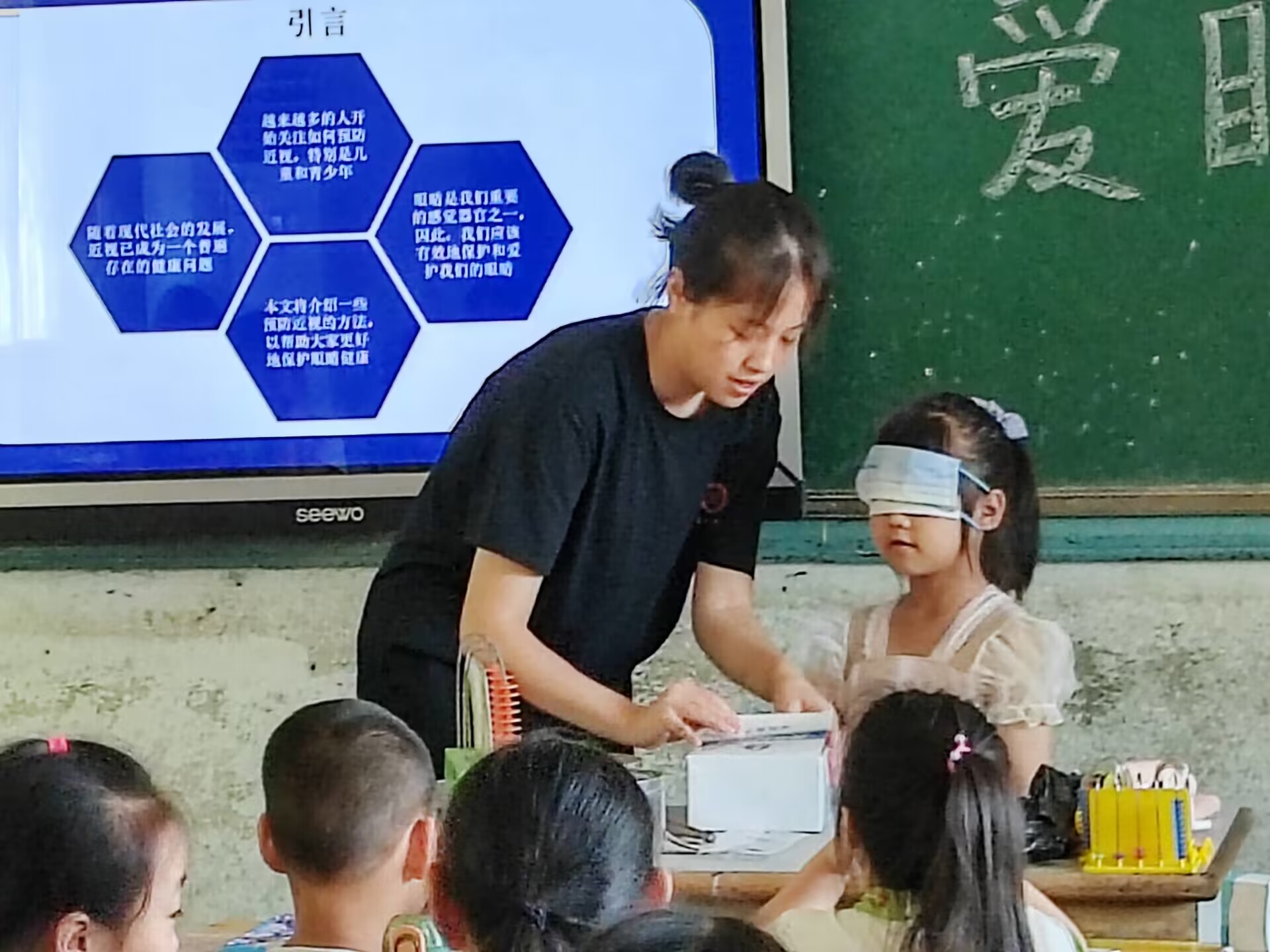 中南在线7月12日消息(通讯员 林翰玟 报道)为了贯彻落实习近平总书记关于”青少年近视防控工作“系列工作中的重要指示批示,进一步加强青少年眼健康科学知识的宣传普及,增强重视眼健康的意识,营造近视防控宣传教育氛围,共同呵护好学生的眼睛,让他们拥有一个光明的未来。7月12日,武昌理工学院人工智能学院暑期社会实践团队——“智能之光”,在平湖乡粉壁坳村绍博小学展开了“爱眼护眼,成长伴行”主题教育活动。