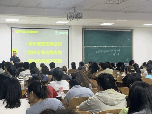 中南在线9月20日消息(通讯员 吴琼 报道)随着社会的发展,考研成为大多数本科生的首要选择,报考人数的逐年增加给各大高校带来了前所未有的压力。然而,近两年报考人数的持续增加也预示着考研难度正在逐年提升,这就需要应届考生做好充分的准备。在择校问题上,很多同学存在“名校情结”、“热门专业情结”和“就业压力情结”等多种心态,在这些因素影响下,不少同学在择校时存在盲目跟风的问题。因此文法学院于9月17-20日18:30在文法学院506开展针对21级全体本科生的考研规划培训。本次活动的参与人员为文法学院21级全体学生。