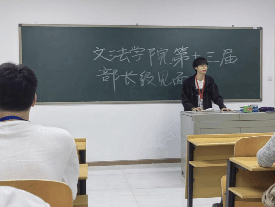 中南在线9月25日消息(通讯员 刘益豪 报道)日月其迈,岁律更新。为推进武昌理工学院文法学院新学期建设,提高学生组织的工作效率,推动新学期各项工作有序开展。9月24日中午12时,武昌理工学院文法学院于文法学院112教室开展第十三届部长级学生干部见面会,本次见面会的参与人员为文法学院第十三届学生组织全体主席团成员与部长级学生干部。