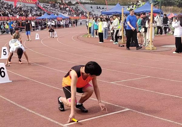 中南在线11月12日消息 (大通社见习记者 肖奔 报道)11月12日上午10时26分,武昌理工学院第十八届运动会男子4x100米决赛正式开始。本次决赛共计两组十八队,每队运动员们都士气高昂,跃跃欲试,尽情展示着自己的青春活力。随着裁判缓缓抬起右手,第六道的各位选手屏气凝神,手中紧紧握住接力棒,时刻准备着起跑。