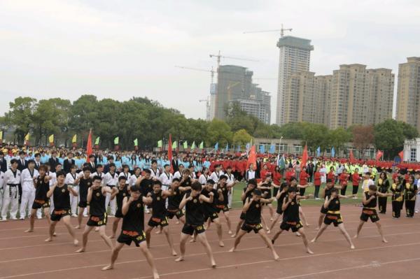11月11日上午8时30分武昌理工学院举行第十八届运动会开幕仪式,其中由风魄跆拳道协会、散打协会、武术协会三大社团一起组合的集体方阵表演引来无数的喝彩。