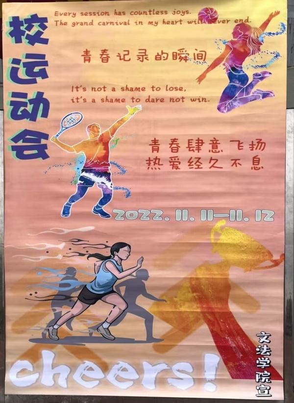 中南在线11月13日消息(大通社见习记者 李泽民 报道)万物始藏,四时已暮。武昌理工学院于11月11日上午开展了为期两天的运动会。为了鼓舞助力各个学院的参赛选手,人工智能学院、智能建造学院、文法学院、商学院、艺术设计学院、影视传媒学院、继续教育学院、生命与科学学院等学院大显神通、各出奇招,精心绘制了独出心裁的宣传板,为运动会增添了浓墨重彩的一笔。