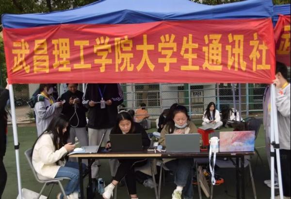 据记者了解到,从武昌理工学院运动会开幕式前,校党委宣传部大学生通讯社的学生就集结完毕,为接下来的工作做好准备。在武昌理工学院运动会上,能够清楚的发现每一场的比赛后都会有着大通社的数名记者。他们或许有着不同的工作,但是都有着一个共同的目标那就是记录、宣传武昌理工学院运动会。武昌理工学院大通社新闻部的记者会在最短的时间内将赛场上比赛的过程、结果转化为一篇篇文章发表出来。他们往往会在比赛开始前就写下底稿,只是为了能够在比赛结束后的半个小时内编辑完成发布出来,让人们可以在第一时间了解武昌理工学院运动会上的比赛。他们每个人会随时备战在赛场上为下次做好准备。