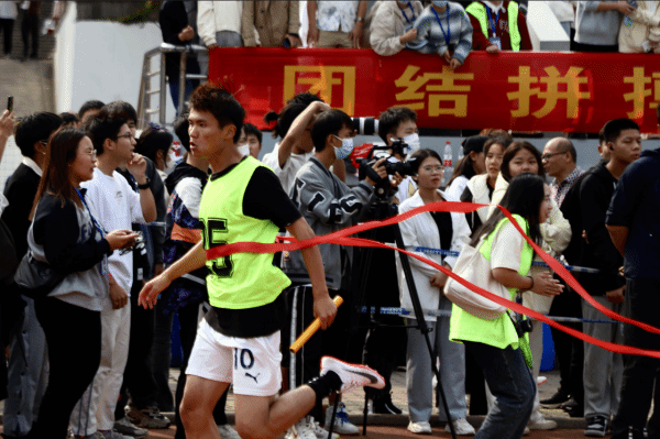 中南在线11月12日消息 (大通社见习记者 孙人庆 报道 孙家轩 念缘蕾 周宁婧 何碧瑶 摄影) 武昌工学院第十八届运动会4×100接力赛于12日13时40分准时开展。接力赛是团队之间的较量,是力的比拼,是素质的较量。秋风萧瑟,吹不走他们内心的火热,冰冷的接力棒,带不走他们手心的热情。一声声呐喊,一次次接棒,他们是那么的默契,尽情的释放出青春的活力。运动员的每一次冲刺,都扣动了同学们的心弦,一步一步冲向胜利的曙光。(完)