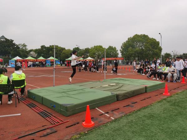 24月22日,在武昌理工学院举行了运动会的女子跳高项目。跳高是田径运动的田赛项目之一。是一种由有节奏的助跑、单脚起跳、越过横杆落地等动作组成,以越过横杆上缘的高度来计算成绩的比赛项目。 当跳高项目开始时,跳高项目成为操场上一道绚丽的风采,再创佳绩.跳高比赛开始,智能建造学院学子在步伐沉稳的助跑后,纵身一跃,身体在空中划出一道有力的弧线后迅速沉身,无疑是一段优美的风景。