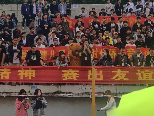 中南在线4月23日消息(大通社记者 江雅娟 见习记者 谢开昊 戴锐 报道)4月23日,是武昌理工学院第十七届运动会召开的第二天,运动会进行的如火如荼,在这激烈的角逐中,除了在操场上挥洒汗水的运动员外,场外也出现了许多的亮点。千人看台上,一只不断用力挥舞着双手的“熊”出现在了众人的视线中。在这炎炎烈日里,一个人穿着厚厚的服装,视线受阻,行动不便,走路甚至还需要另一个人的搀扶。但是,这并不能影响到她的工作热情,她持续地奔走于操场上的各个比赛区域之间,为所有的参赛选手加油打气,这就是武昌理工学院人工智能学院的吉利熊。参赛选手都相信,这只“熊”会为他们带来好运,助他们在比赛中取得好成绩,所以,她所走过的地方,都会有一大群人围着她,祈求好运的到来。