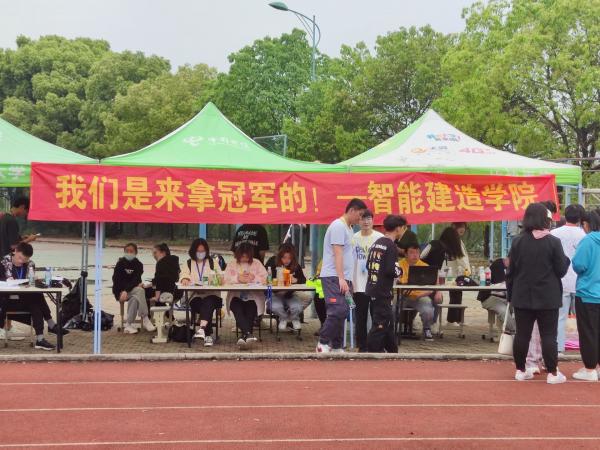 在智能建造学院在城市建设学院服务点门口的宣传横幅处,许多同学在围观。原来,智能建造学院以简单明了的宣传标语‘我们是来拿冠军的’吸引了同学们,软件工程2003班的袁佳俊同学说:“一句简单的话语凸显出智能建造学院的同学们对自己学院充满了自信,是一种“会当临绝顶,一览众山小”气势,同时展现了武昌理工学院第十七届运动会的运动风采。”在生命科学学院服务点门口的宣传横幅处,用“运动强体质,竞争显活力,团结创佳绩”用质朴的语言来为生命科学学院的同学们加油打气,药学2001班的师红蝶同学说:“我希望生命科学学院的学子们能在我们的鼓舞下在运动会上施展各自的才能。”