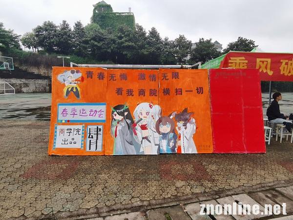 其中,平宣部展示的助力板报由三个板报组成。据了解,商学院平面宣传中心于一周前就开始准备板报,在比赛开始前一天完成板报。整张板报以橙、红色为主色调,主要内容为游戏明日方舟中的四个人物,分别是夕、年、阿米娅和阿四位游戏角色,他们向画板外伸出援手,代表着齐心协力、携手共进的精神。此外,板报上一句“青春无悔,热情无限。看我商院,横扫一切。”彰显了商院热血澎湃的气概。