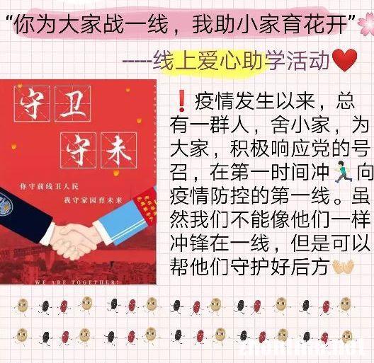 据记者了解,学校文件刚刚下发,城市建设学院、文法与外语学院、人工智能学院、影视传媒学院等九个院团委,数百人积极响应参加迅速发起线上爱心助学项目,鼓励学生党员、青年团员,以最青春的名义,用最青春的力量行动起来共同抗击疫情,以院级为单位组建爱心线上助教团队。此次活动的服务对象是省内医务人员、公安民警、疾控工作人员、社区工作人员等抗疫一线工作者未成年子女。招募符合条件的团学骨干、社团成员、青年志愿者等报名,采用“志愿者报名—信息审查—线上试讲面试—配备岗位”的严格招募流程,确保招募一支综合素质过硬、专业特长突出的青年志愿者队伍,共同组成“梅南山”线上战“疫”爱心助教团。城市建设学院学工第三党支部首先便立即创建了一个志愿者群,与各党支部以及学生组织交流,向各支部群、学生会群以及班团交流群发送推文,召集志愿者参与此次活动。通知发出不久,就有来自各个支部各个部门各个班级的志愿者踊跃报名,截止目前为止,城市建设学院已有60余人参加。记者进一步采访到城市建设学院学工第三党总支部负责人王亮同学,他说到:“我非常感动,活动一开始,就有60余人参加。学生服务志愿者主要工作是开展线上学业辅导、读书交流、答疑解惑、心理辅导等志愿服务,帮助在前线战“疫”的工作人员未成年子女的学习,让他们的子女能够调整好情绪,养成好习惯,认真学习。在他们保卫“大家”的时候,我们会尽自己所能在后方替他们保护“小家”。发挥学生党员、团员青年的示范引领作用,贡献出我们青年大学生的一份力量。”